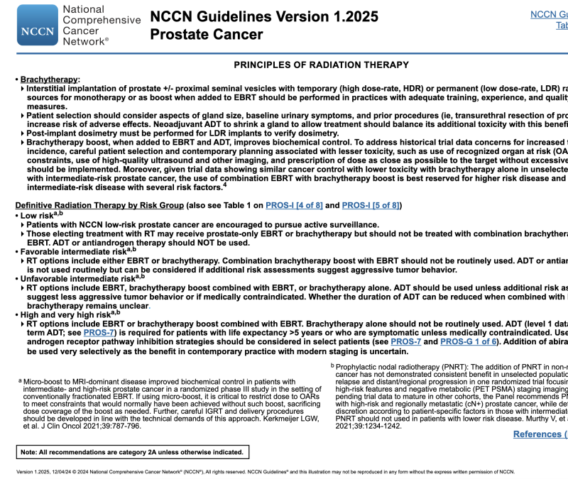 NCCN Clinical Practice Guidelines in Oncology (NCCN Guidelines ®) Prostate Cancer Version 1.2025 — Principles of Radiation Therapy